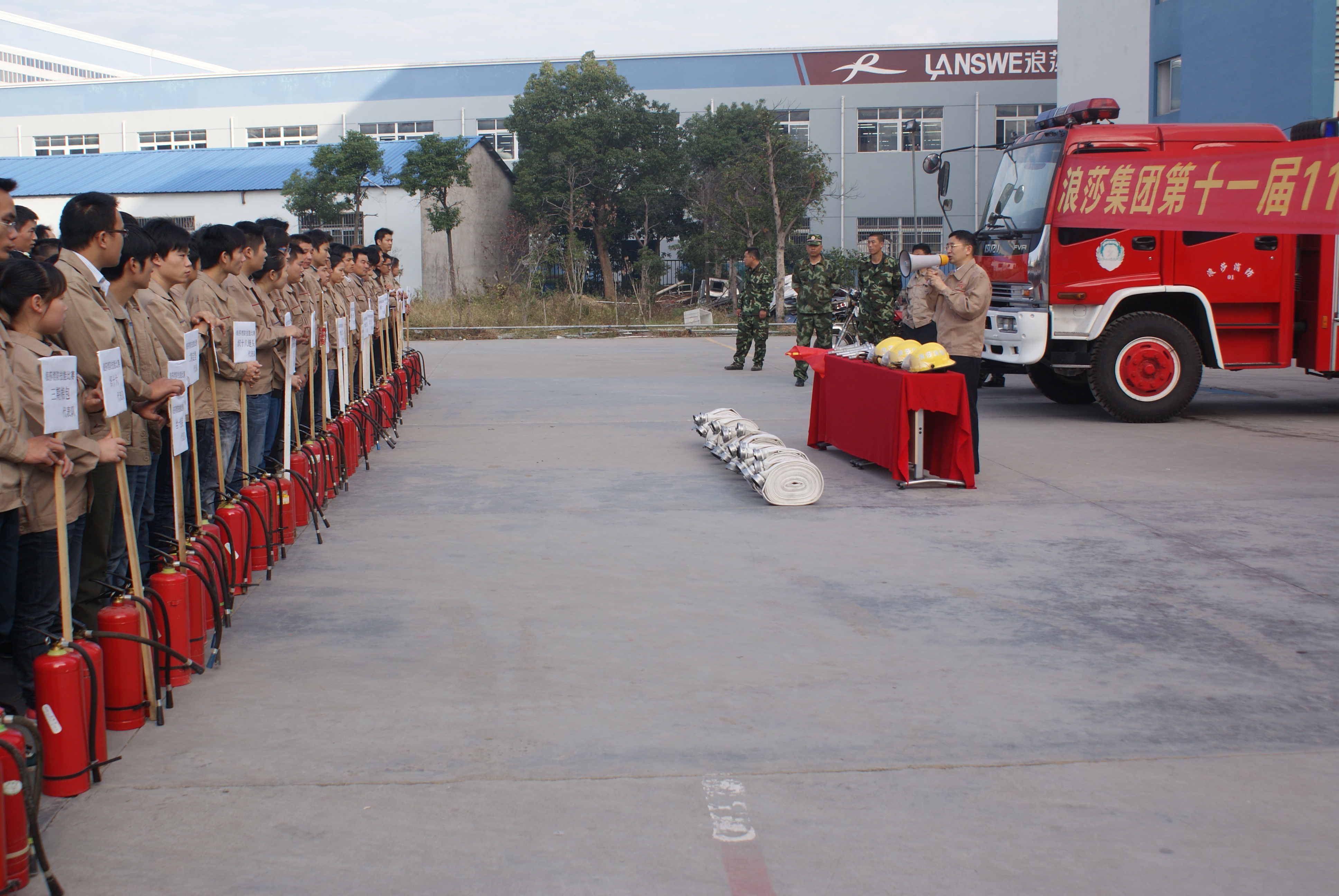 浪莎集團第十一屆11.9消防大比武,浪莎集團第十一屆11.9消防大比武在浪莎三期工業(yè)園隆重舉辦,公司各部門車間都組成了消防隊參加比武,場面頗為壯觀。在董事長進行指示性講話之后,大比武正式開始了。只見參賽選手全副武裝,儼然是專業(yè)的消防隊員,他們在水袋、滅火器使用等環(huán)節(jié)中一一比拼,最終,絲襪定型2車間以綜合成績第一名摘得大比武的冠軍。