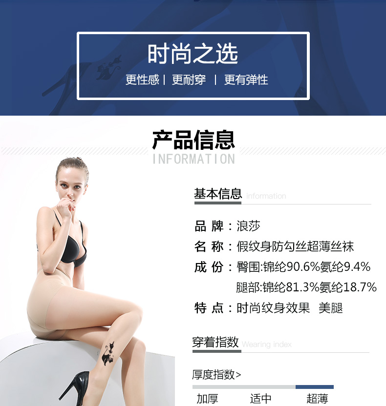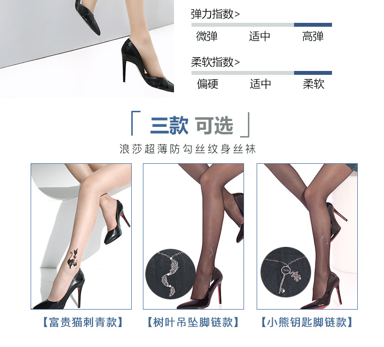 浪莎提花絲襪女 性感時尚假紋身刺青連褲襪薄款 防勾絲黑絲襪